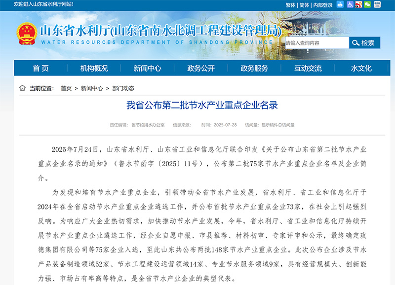 2025年7月24日,我司通過山東省第二批節(jié)水產(chǎn)業(yè)重點企業(yè),為有關(guān)部門認可我們的工作...